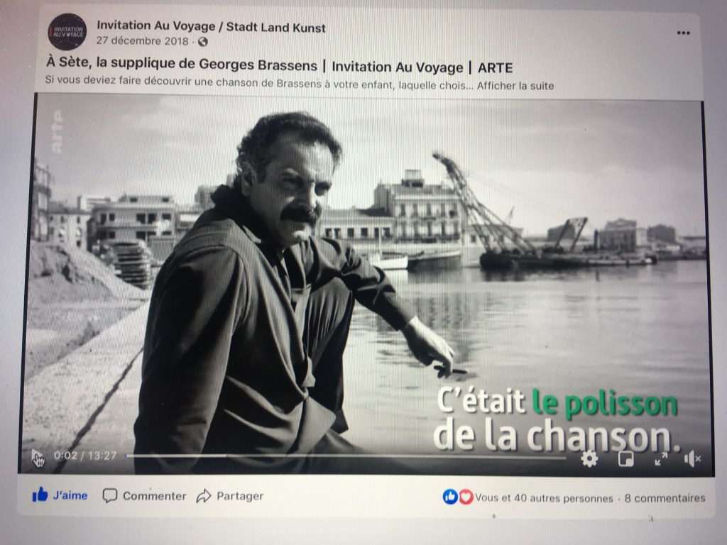 Invitation au Voyage, Arte réalisation d’épisodes de la collection Invitation au Voyage, en 2017-2018, produite par Eléphant et Cie : A Sète, la supplique de Georges Brassens, 13 mn Le Nice russe de Romain Gary, 13 mn Partager : Cliquer pour envoyer un lien par e-mail à un ami(ouvre dans une nouvelle fenêtre) E-mail Cliquer pour imprimer(ouvre dans une nouvelle fenêtre) Imprimer Cliquer pour partager sur X(ouvre dans une nouvelle fenêtre) X Cliquez pour partager sur Facebook(ouvre dans une nouvelle fenêtre) Facebook Cliquez pour partager sur LinkedIn(ouvre dans une nouvelle fenêtre) LinkedIn J’aime chargement…